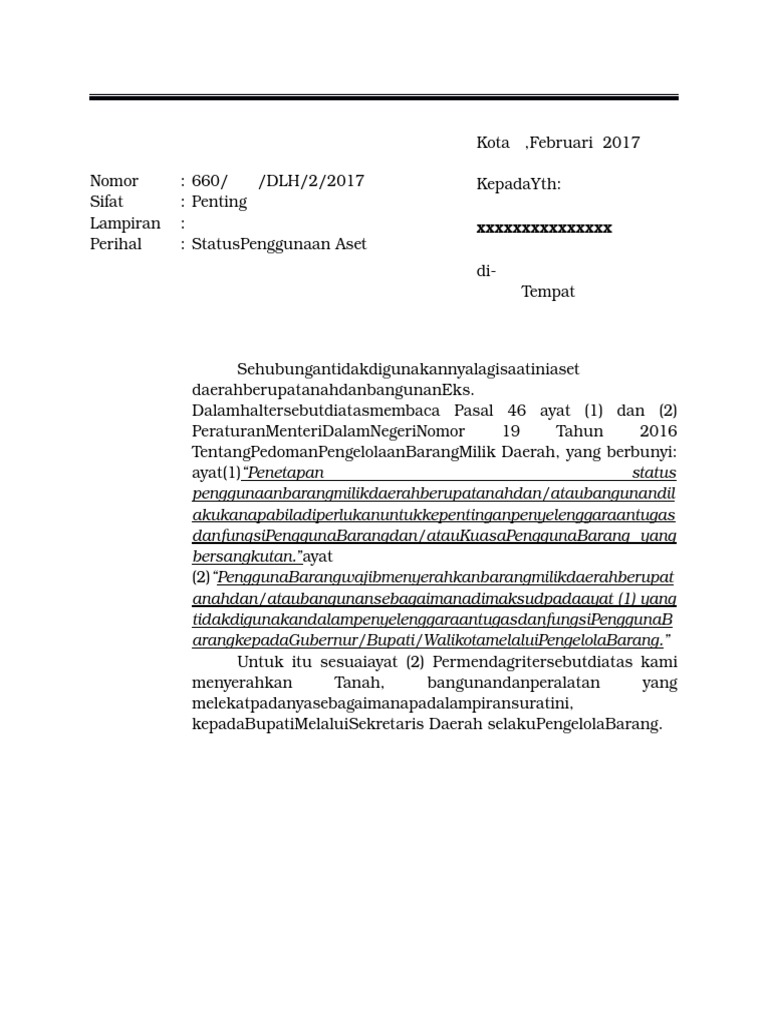 Contoh Surat Penyerahan Aset Pdf